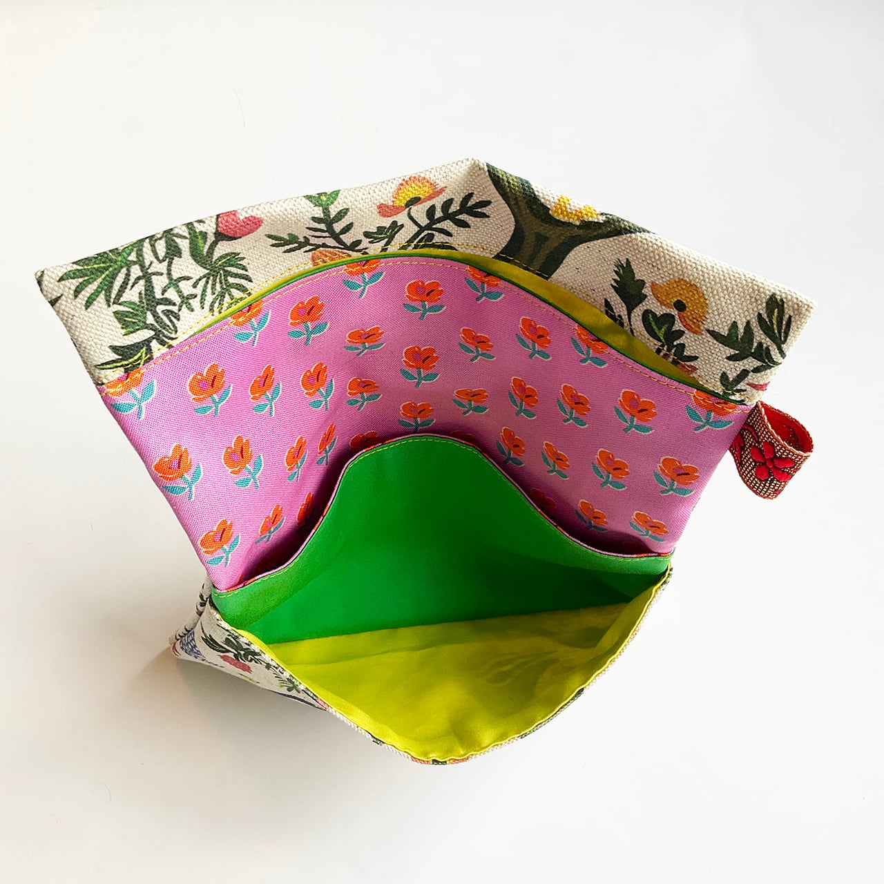 思い立ってデッドストックの布で色とりどりに作って使っていたら、「かわいい!どこで買ったの?私も欲しい!」「こういう軽い財布を探していたよ」とたびたび言われるようになりましたので、sawing club で作ってお裾分けすることにしました。