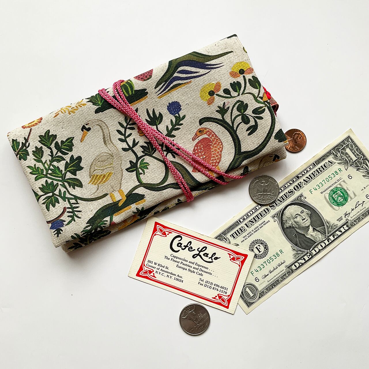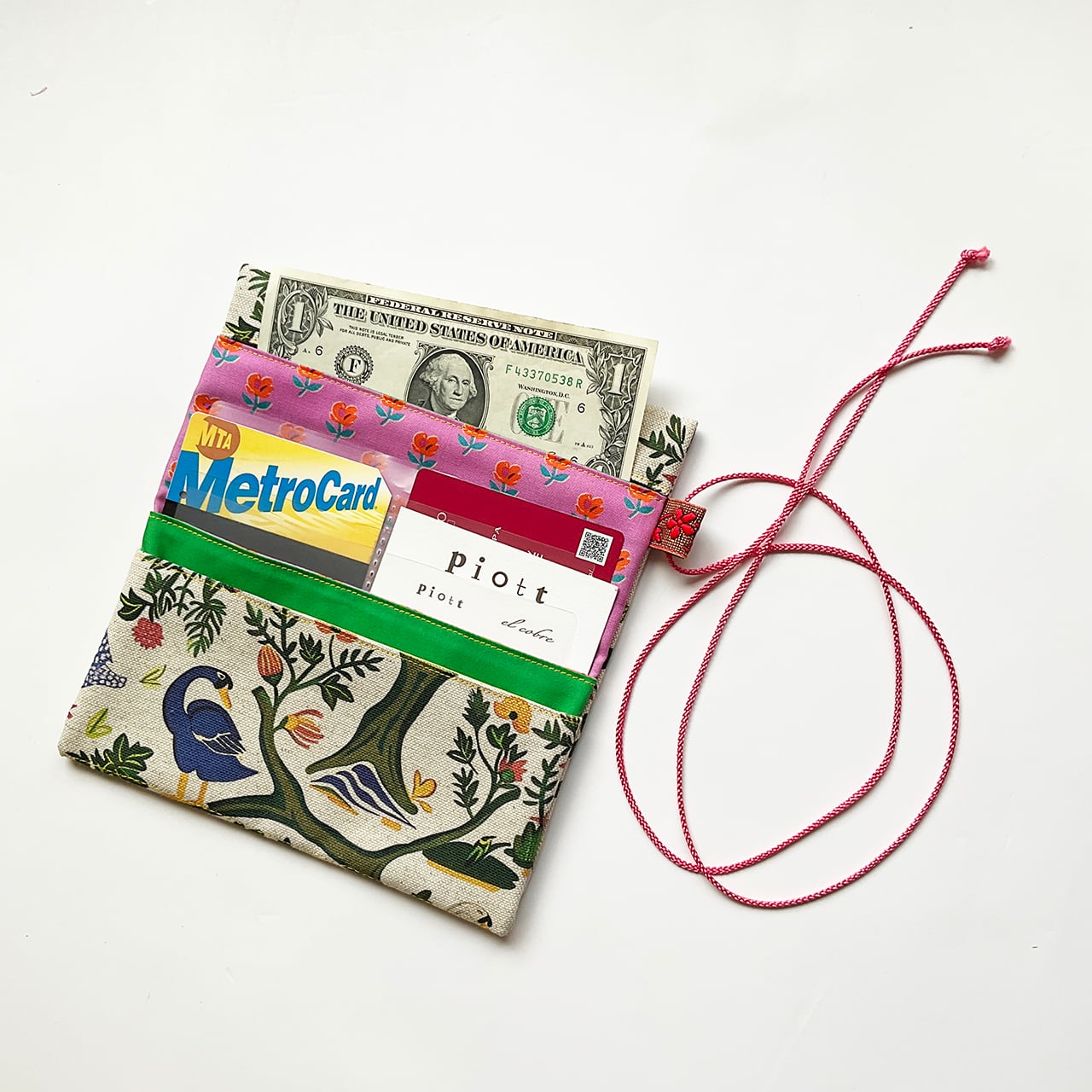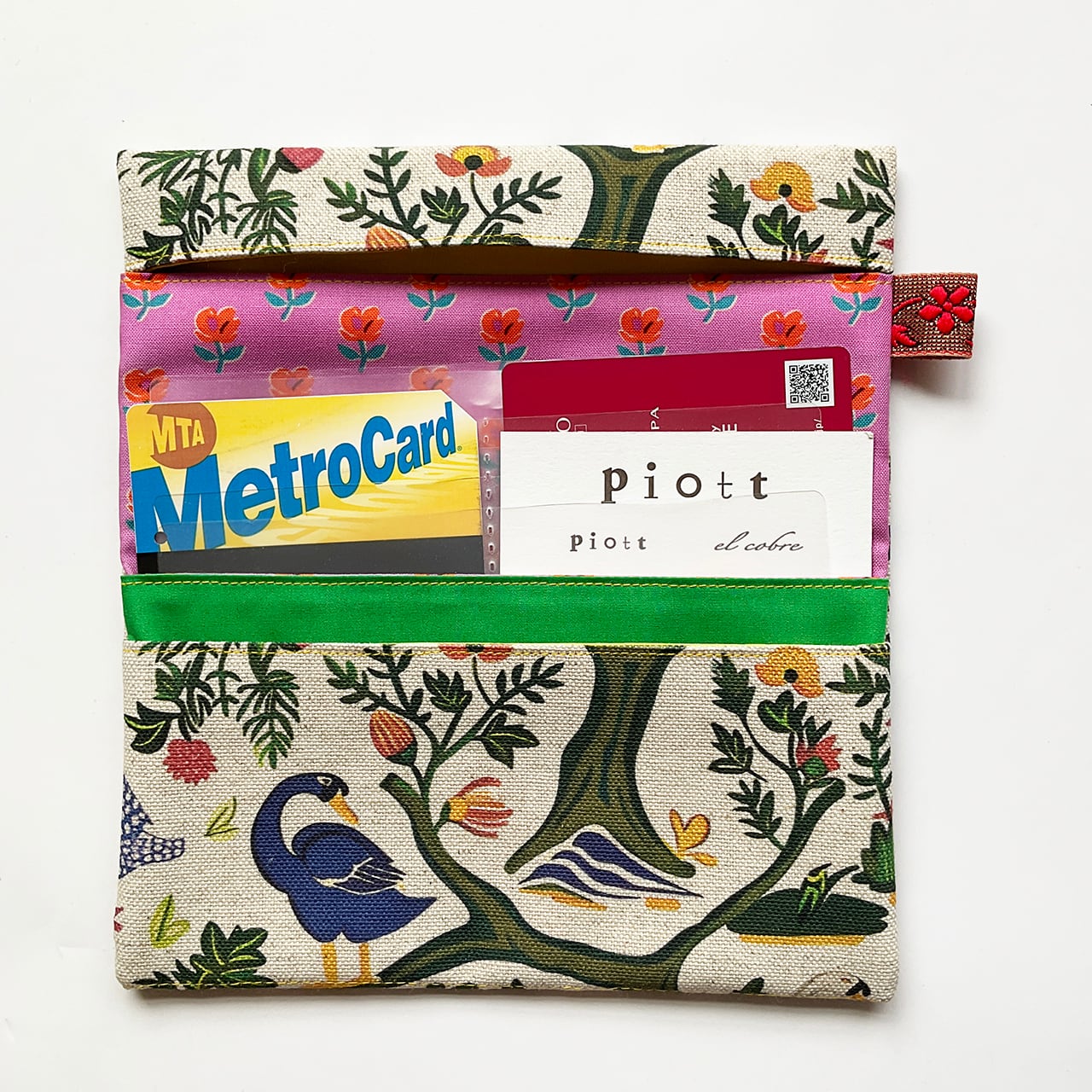 軽くて小粋な、シンプルで使いやすい布の札入れです。お薬手帳、へそくり管理にも。