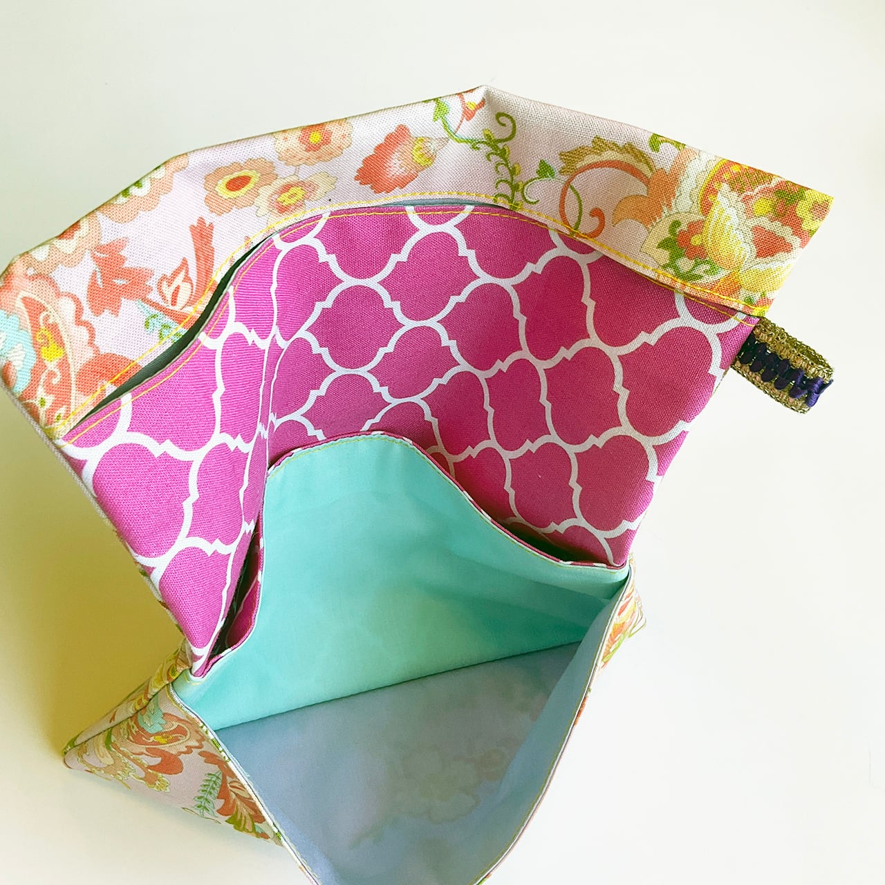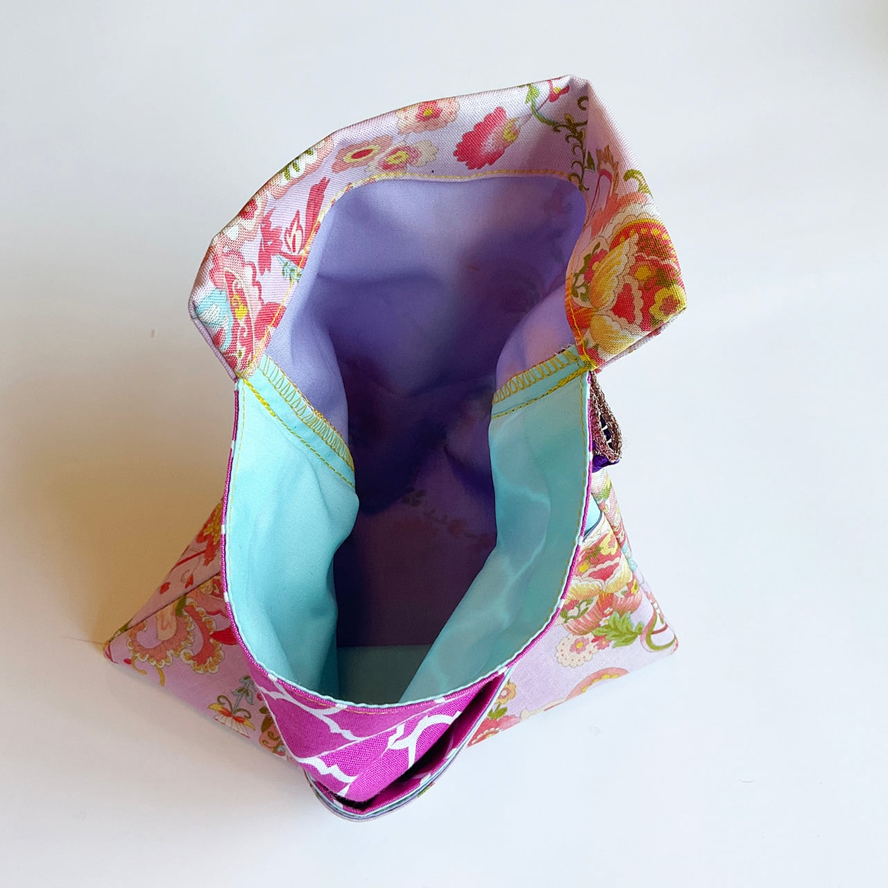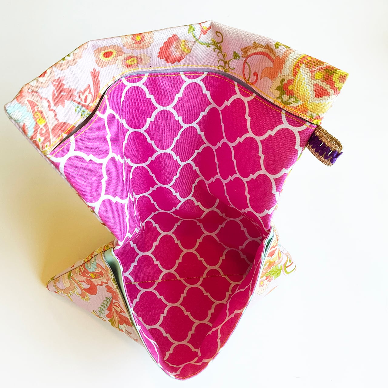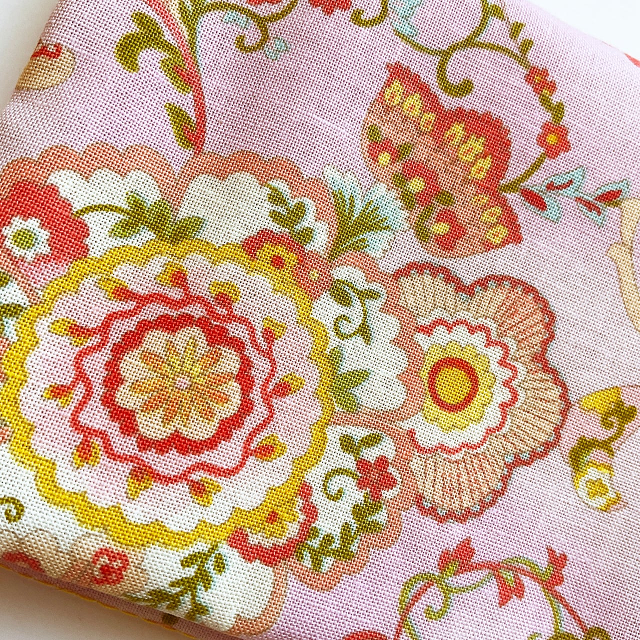 チャイナ。中華風になりすぎないようにポップに布合わせしました。地の桃色は優しい色合いで、チャイナの模様も少し靄がかって、キッチュというよりは優しい雰囲気です。とても複雑なのでなかなか写真に正しい色が出るのが難しい。たくさんの写真を載せましたので補完してもらえるとありがたいです。