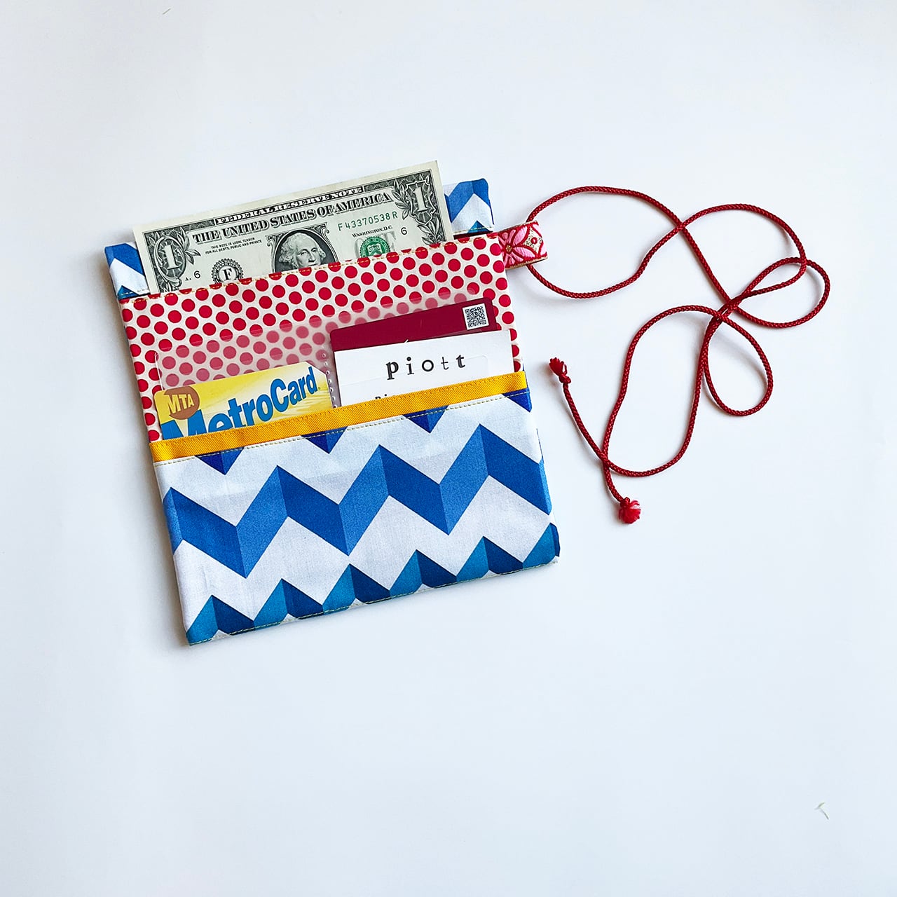 軽くて小粋な、シンプルで使いやすい布の札入れです。お薬手帳、へそくり管理にも。