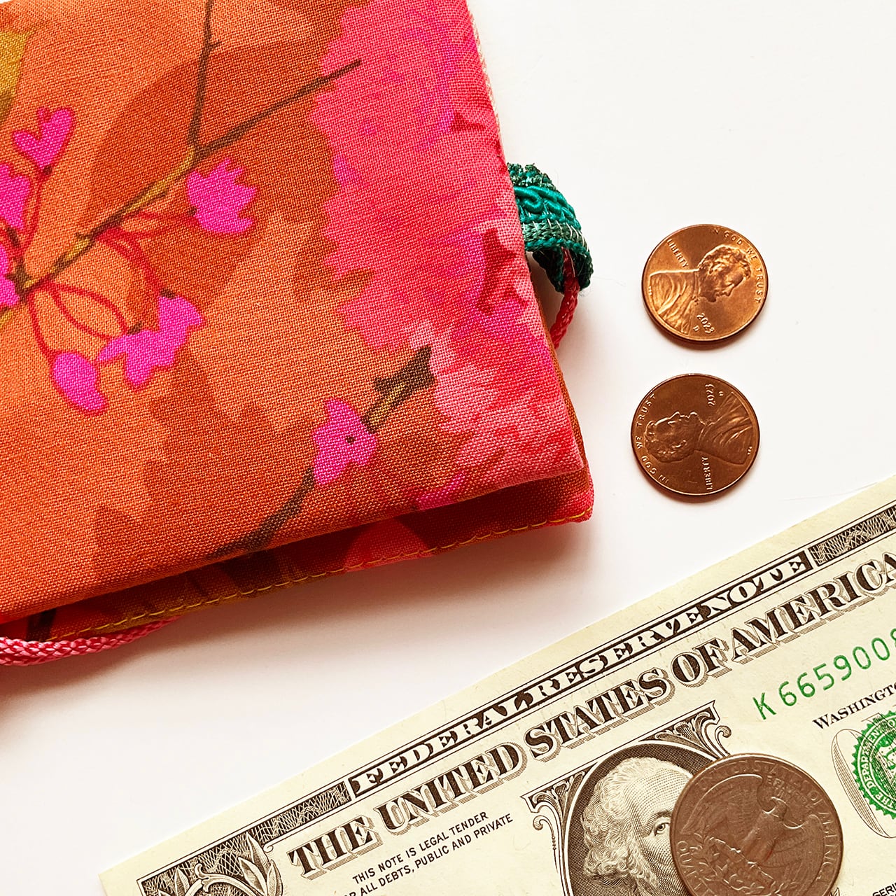 思い立ってデッドストックの布で色とりどりに作って使っていたら、「かわいい!どこで買ったの?私も欲しい!」「こういう軽い財布を探していたよ」とたびたび言われるようになりましたので、sawing club で作ってお裾分けすることにしました。