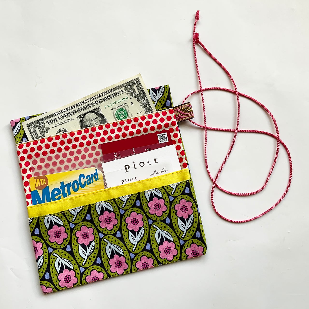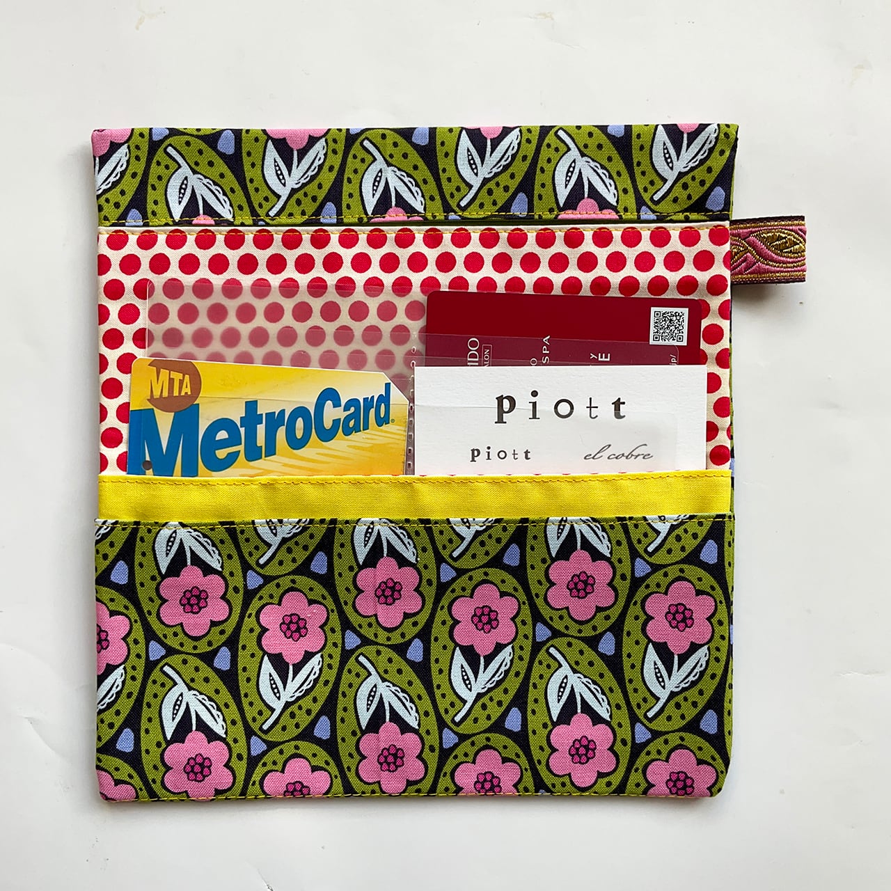 軽くて小粋な、シンプルで使いやすい布の札入れです。お薬手帳、へそくり管理にも。
