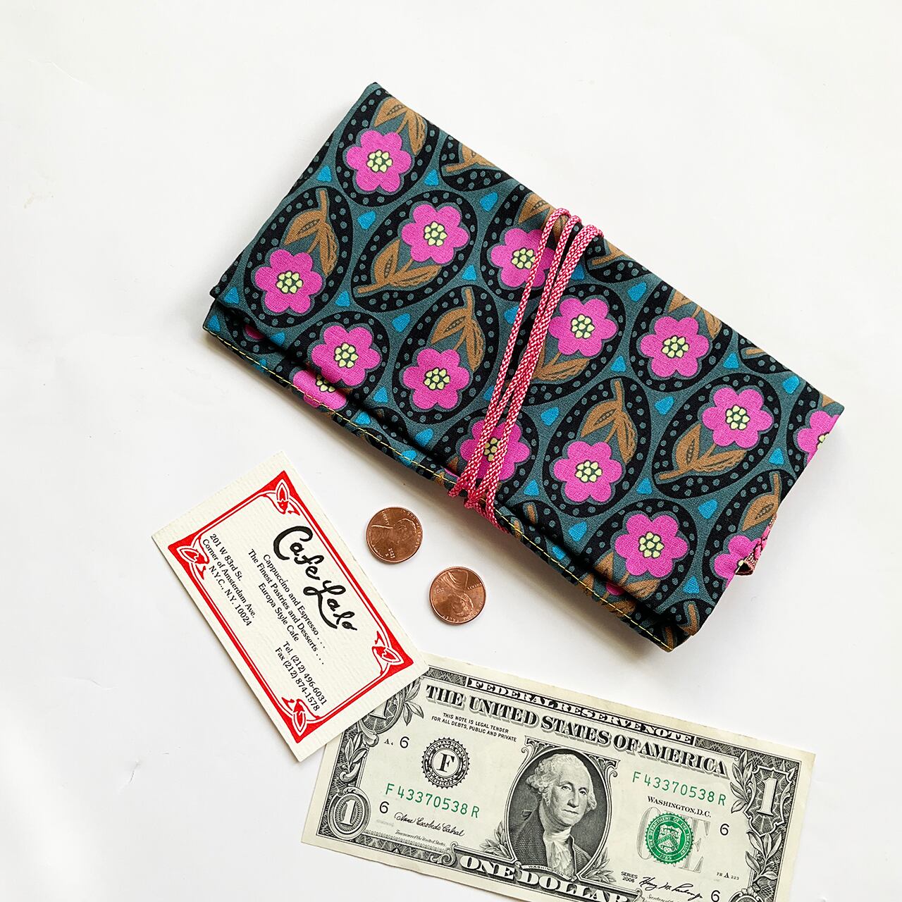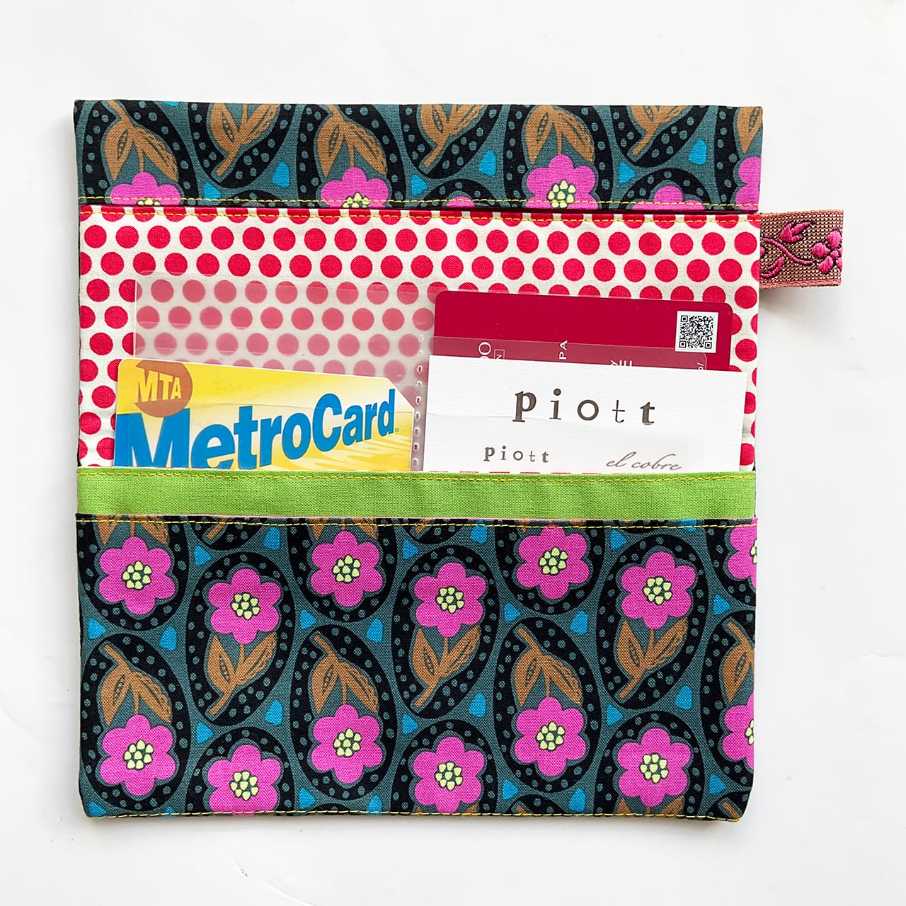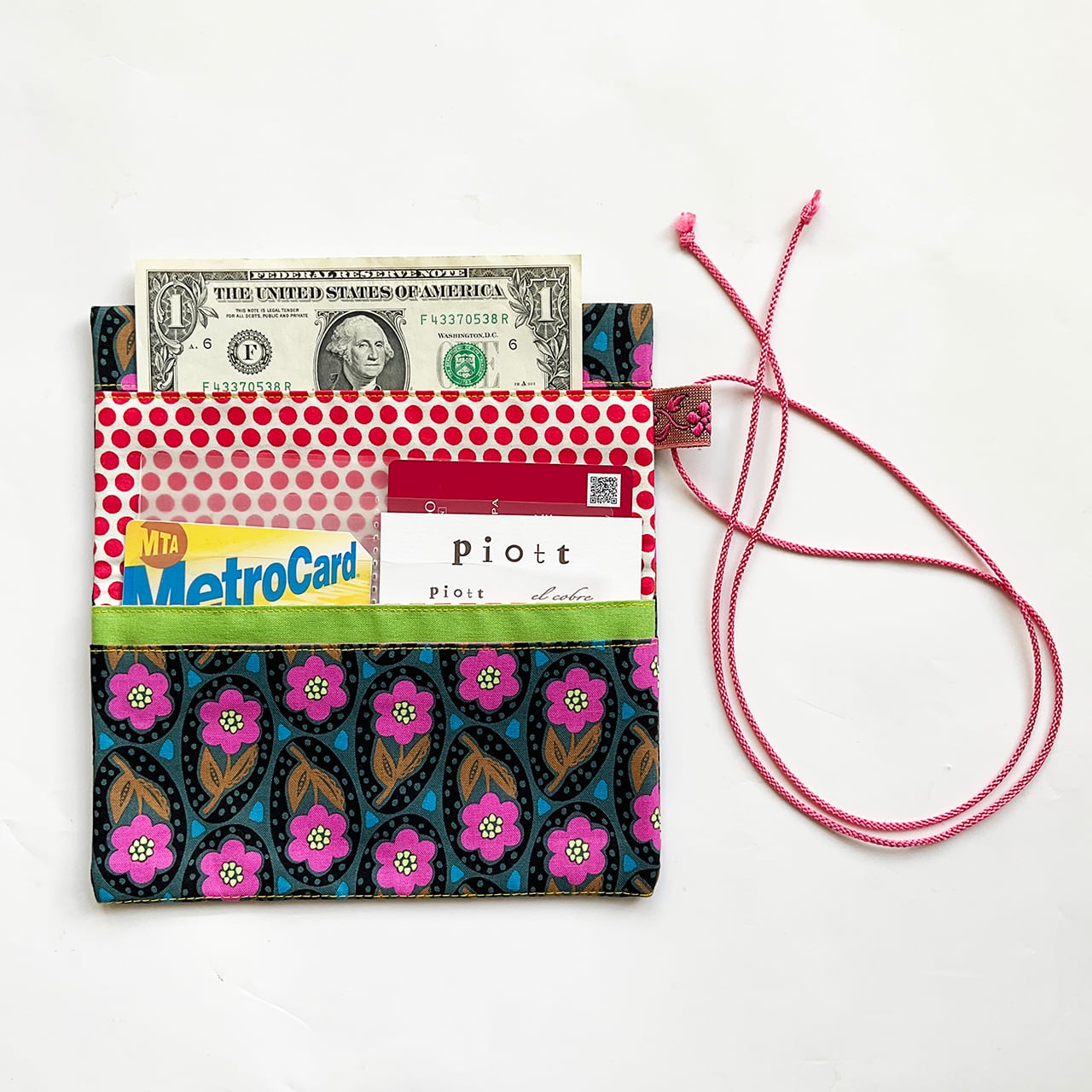 軽くて小粋な、シンプルで使いやすい布の札入れです。お薬手帳、へそくり管理にも。