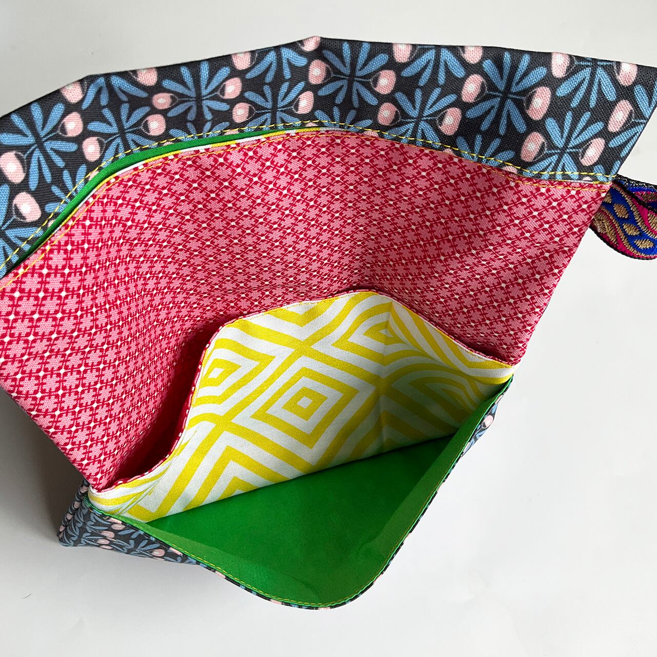 思い立ってデッドストックの布で色とりどりに作って使っていたら、「かわいい!どこで買ったの?私も欲しい!」「こういう軽い財布を探していたよ」とたびたび言われるようになりましたので、sawing club で作ってお裾分けすることにしました。
