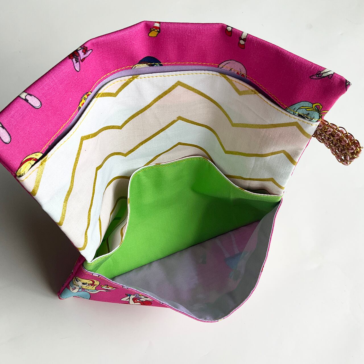 思い立ってデッドストックの布で色とりどりに作って使っていたら、「かわいい!どこで買ったの?私も欲しい!」「こういう軽い財布を探していたよ」とたびたび言われるようになりましたので、sawing club で作ってお裾分けすることにしました。