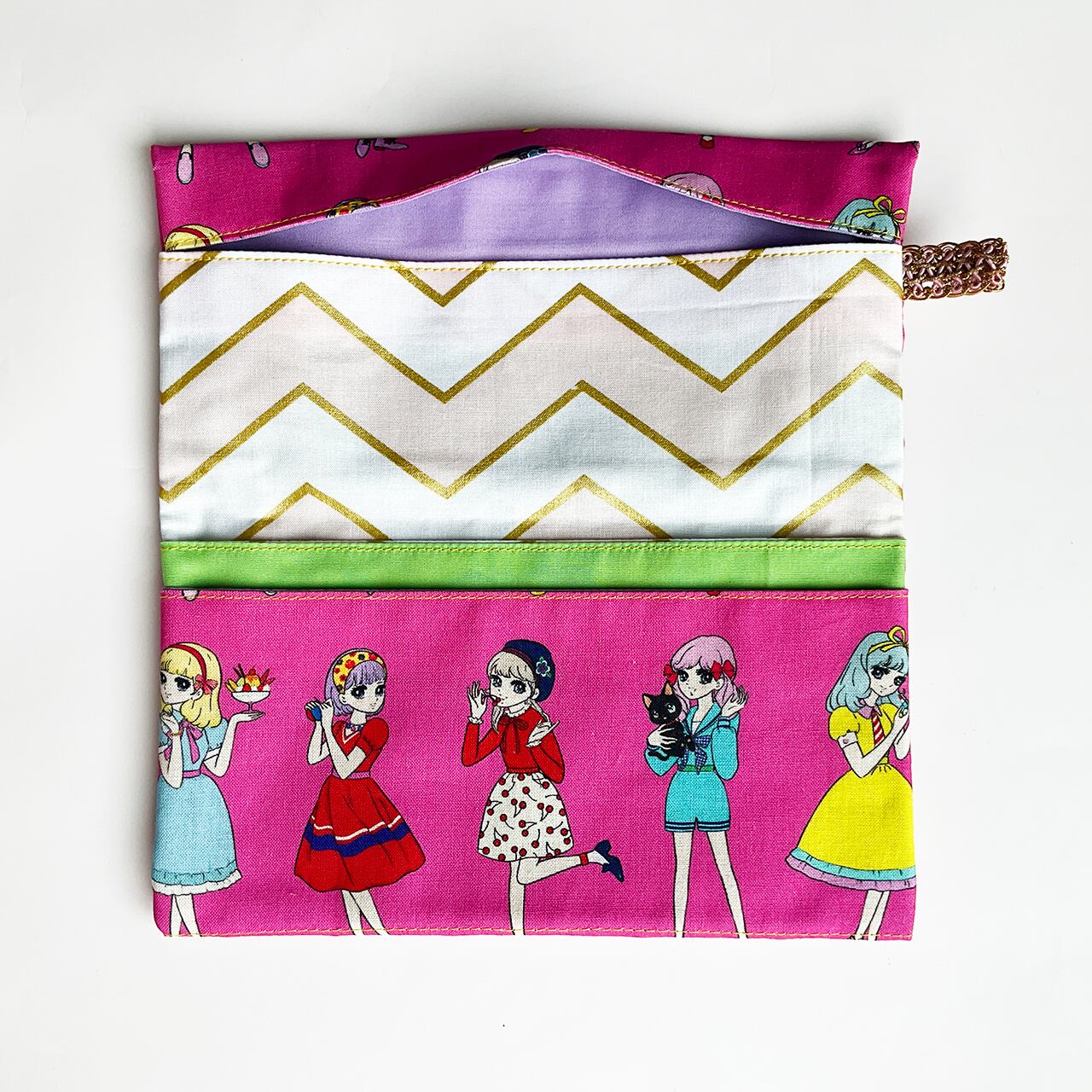 ・中布 パステルピンクの金ジグザグ/チラ見えライン わかくさ/インナー ラベンダー