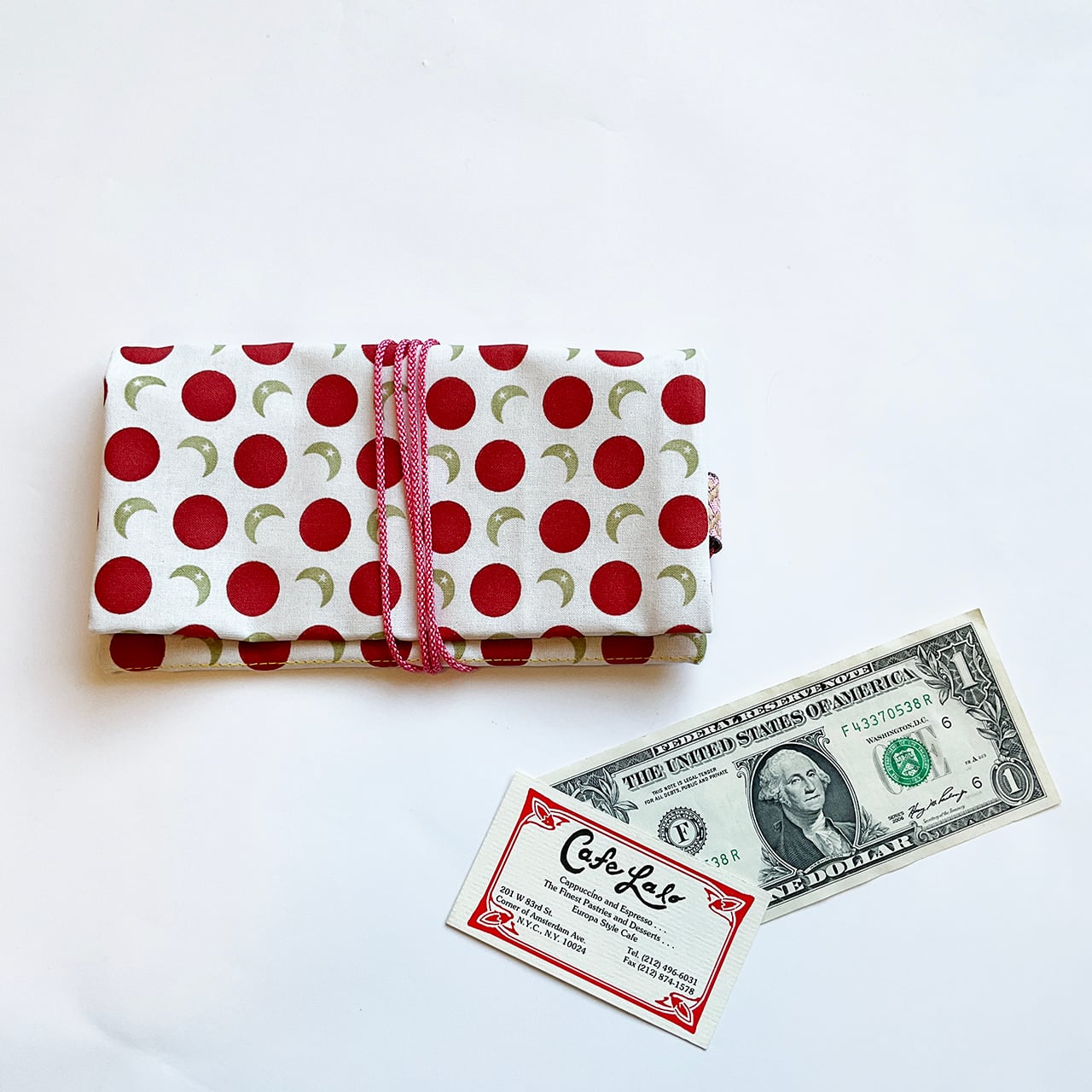 軽くて小粋な、シンプルで使いやすい布の札入れです。お薬手帳、へそくり管理にも。