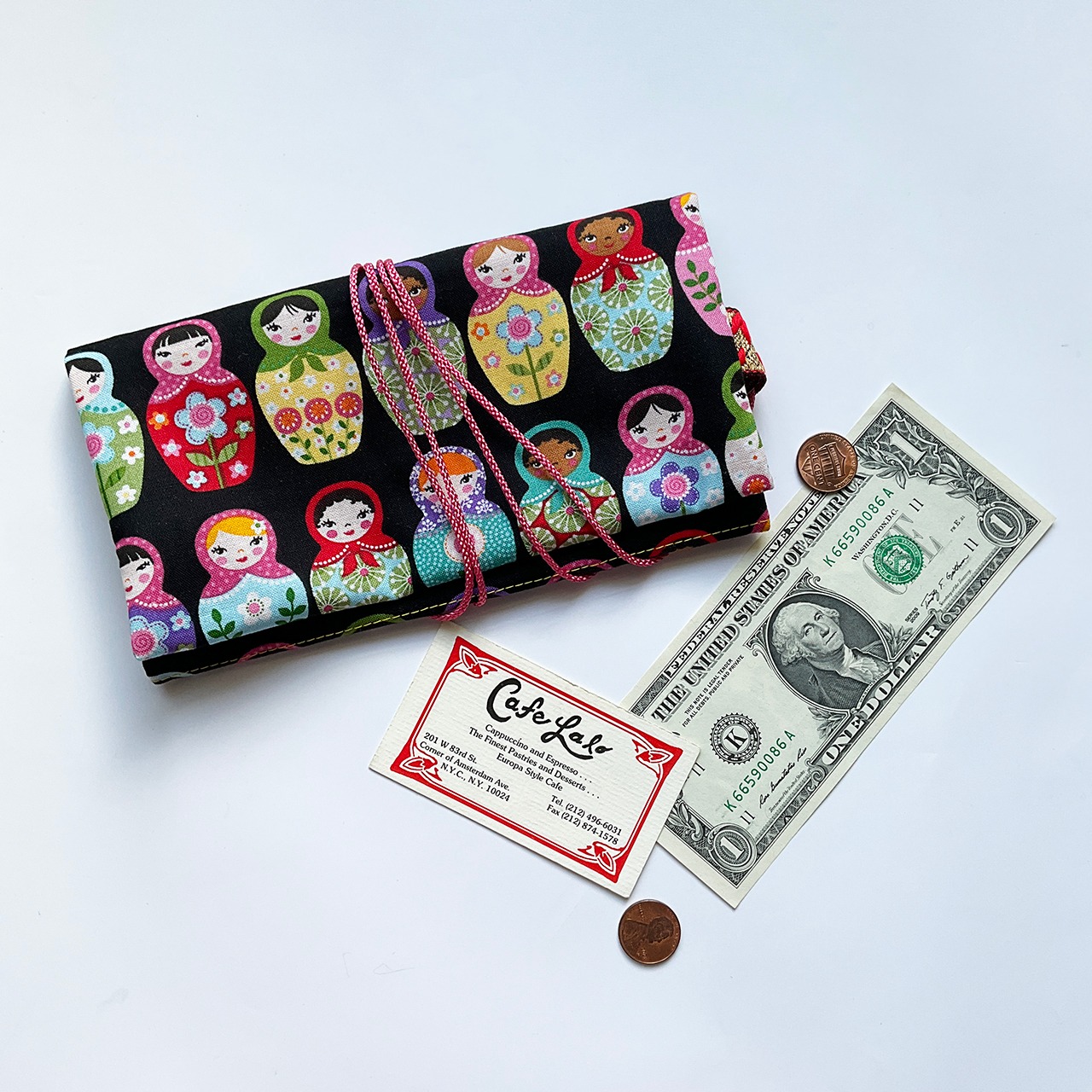 軽くて小粋な、シンプルで使いやすい布の札入れです。