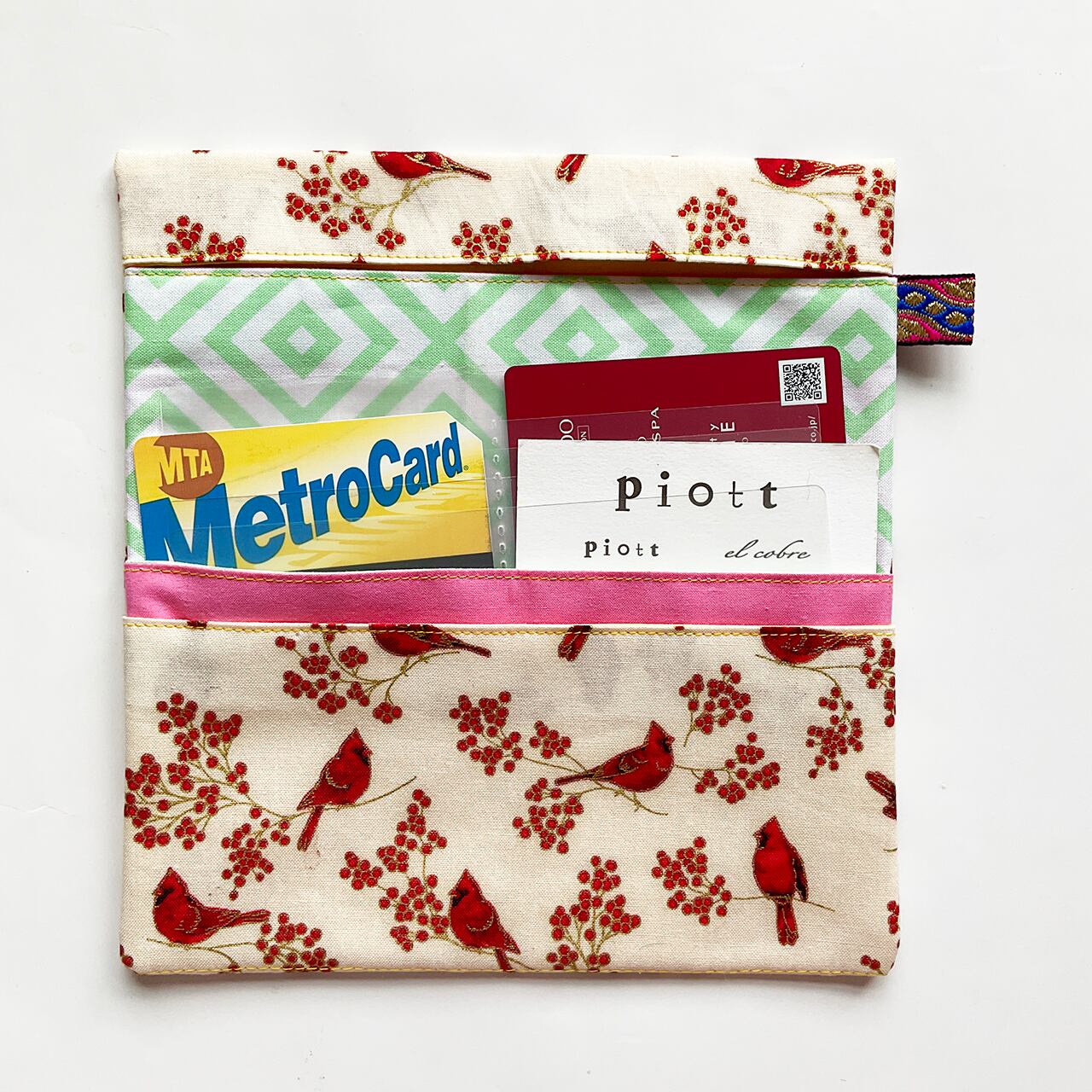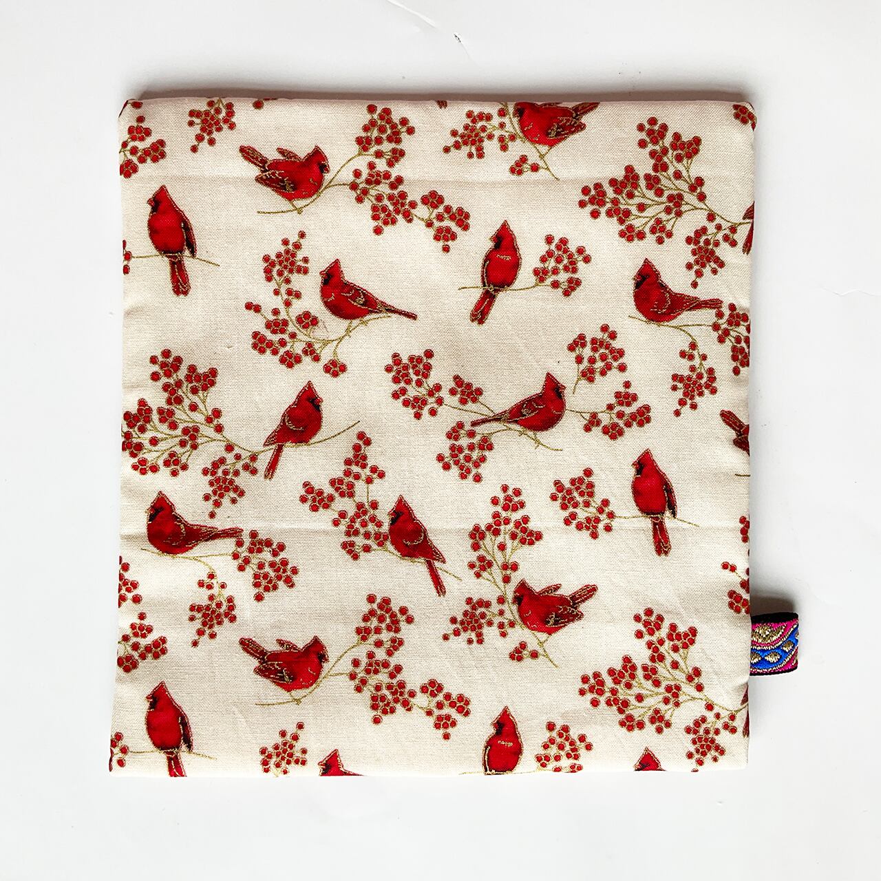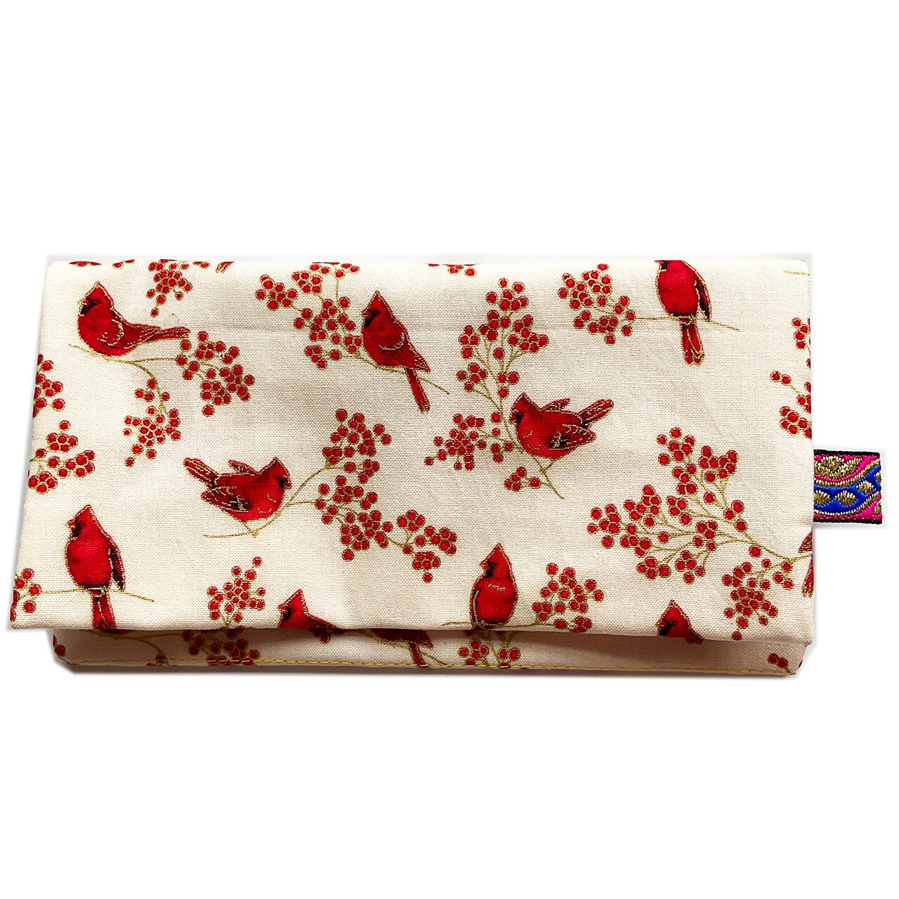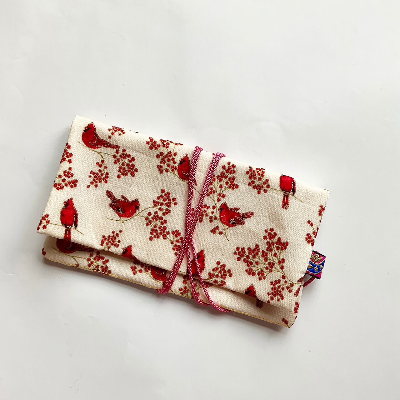 赤い鳥と赤い実 白 ハンドメイド-ヌノザイフ-7-58