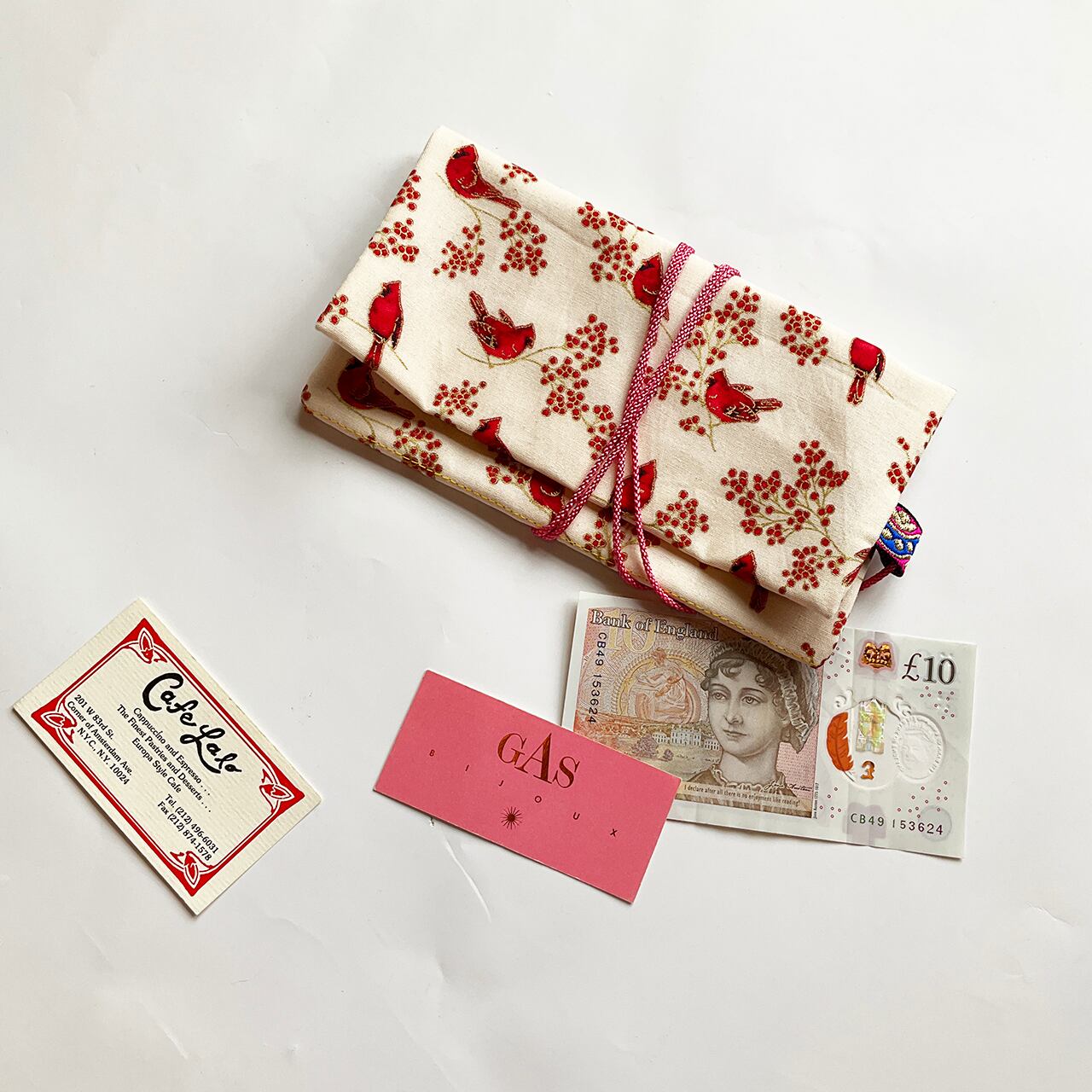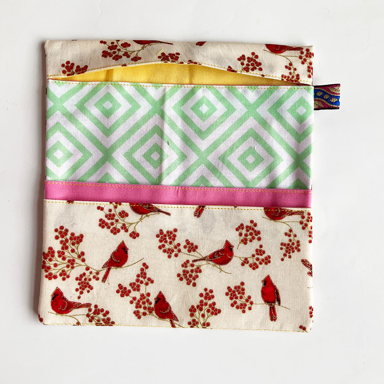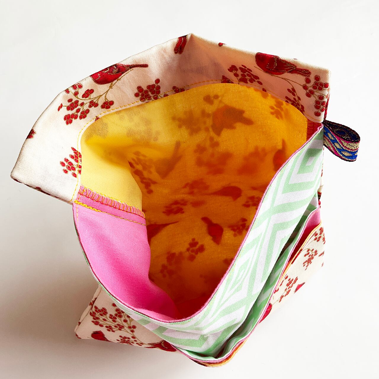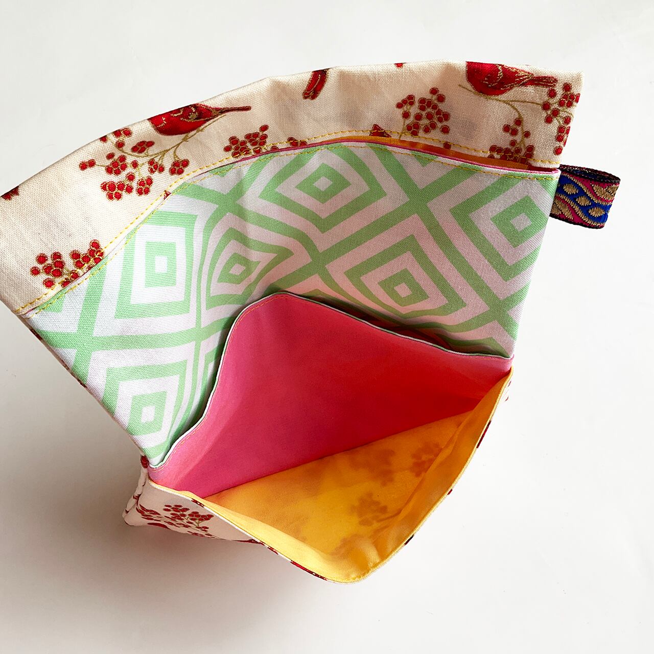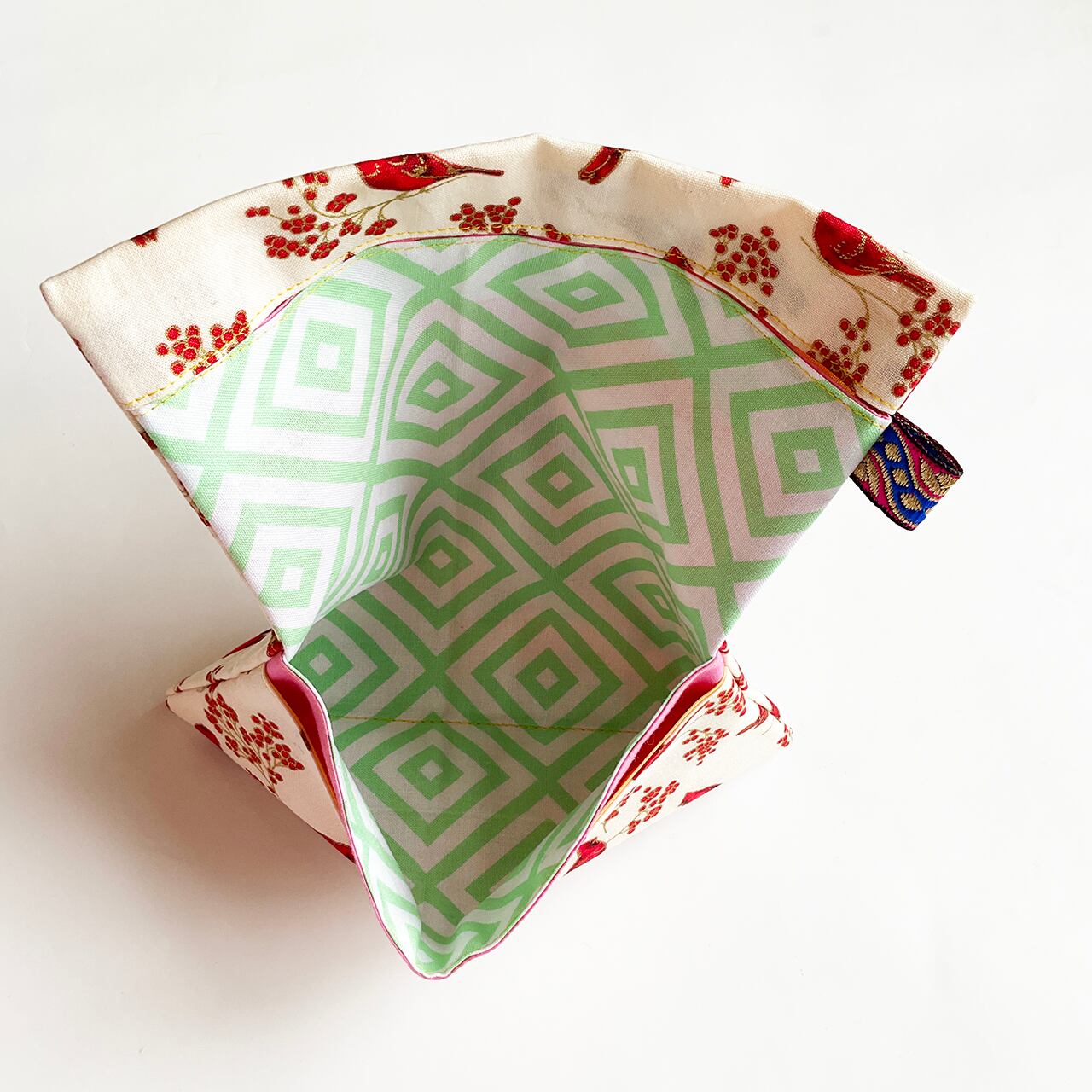 赤い鳥と赤い実 白 ハンドメイド-ヌノザイフ-7-58
