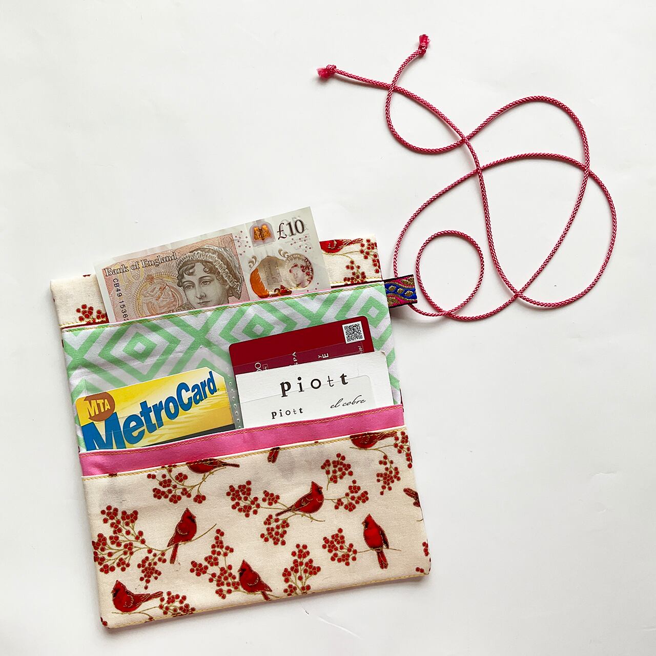 軽くて小粋な、シンプルで使いやすい布の札入れです。お薬手帳、へそくり管理にも。