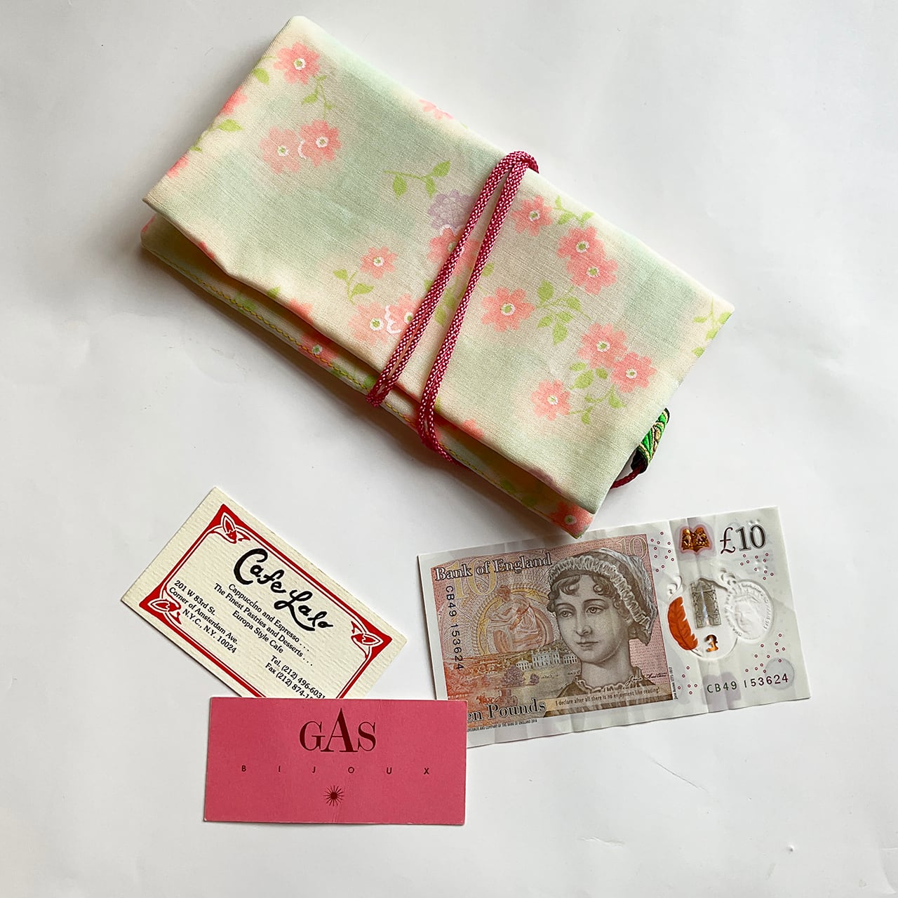 軽くて小粋な、シンプルで使いやすい布の札入れです。お薬手帳、へそくり管理にも。
