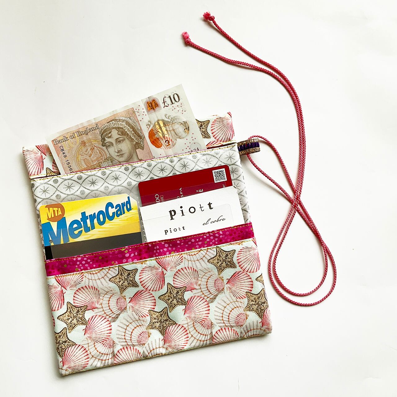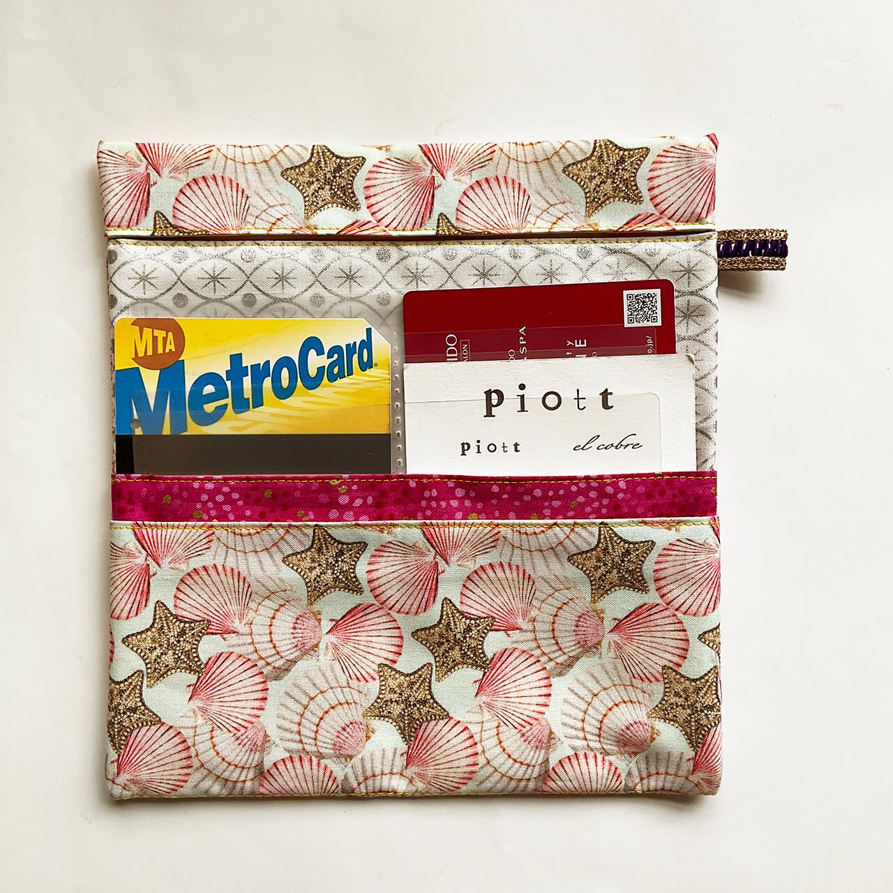 軽くて小粋な、シンプルで使いやすい布の札入れです。お薬手帳、へそくり管理にも。