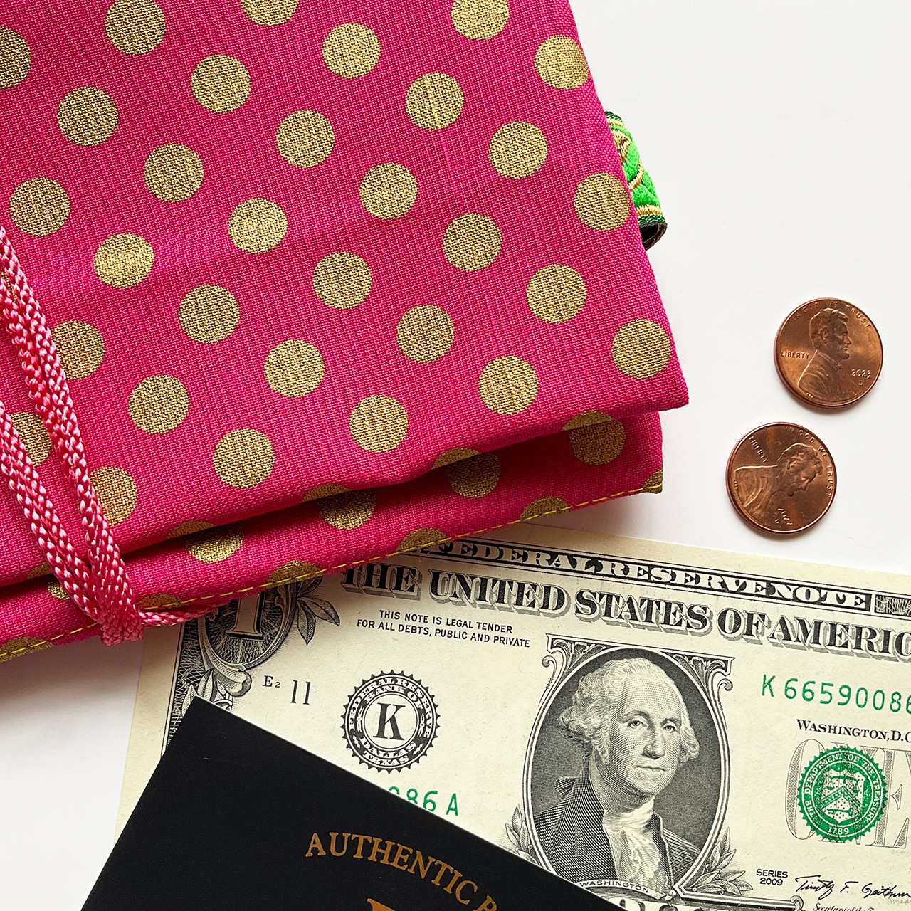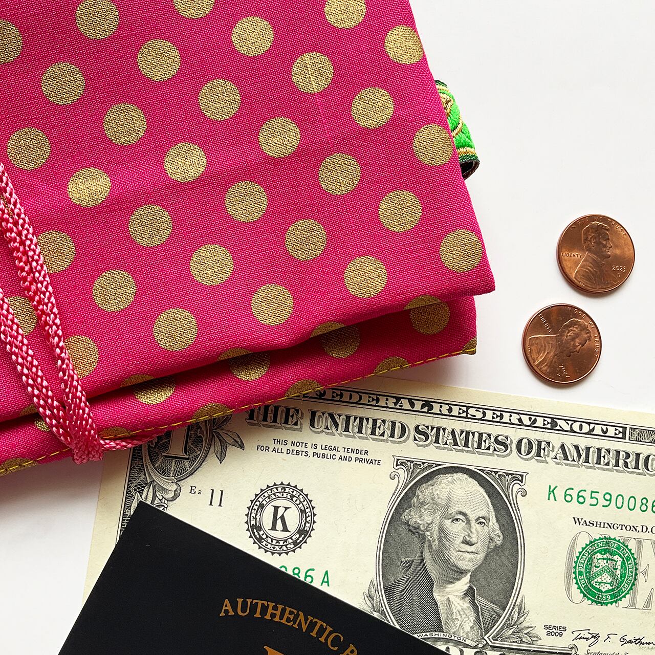 軽くて小粋な、シンプルで使いやすい布の札入れです。お薬手帳、へそくり管理にも。