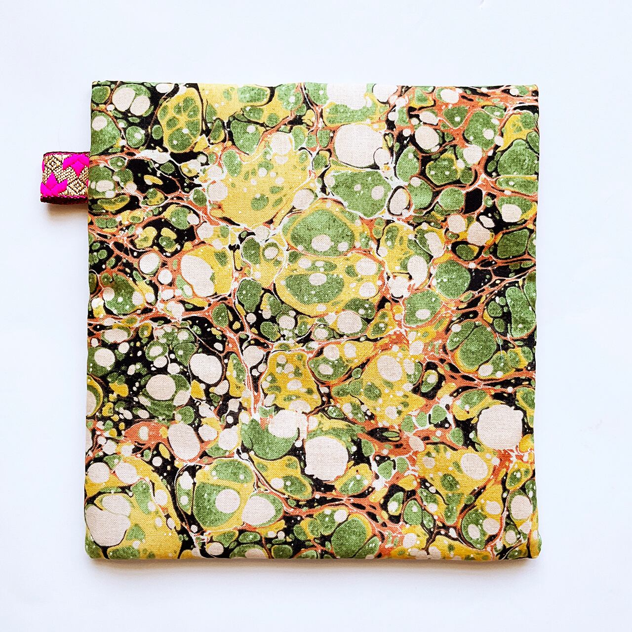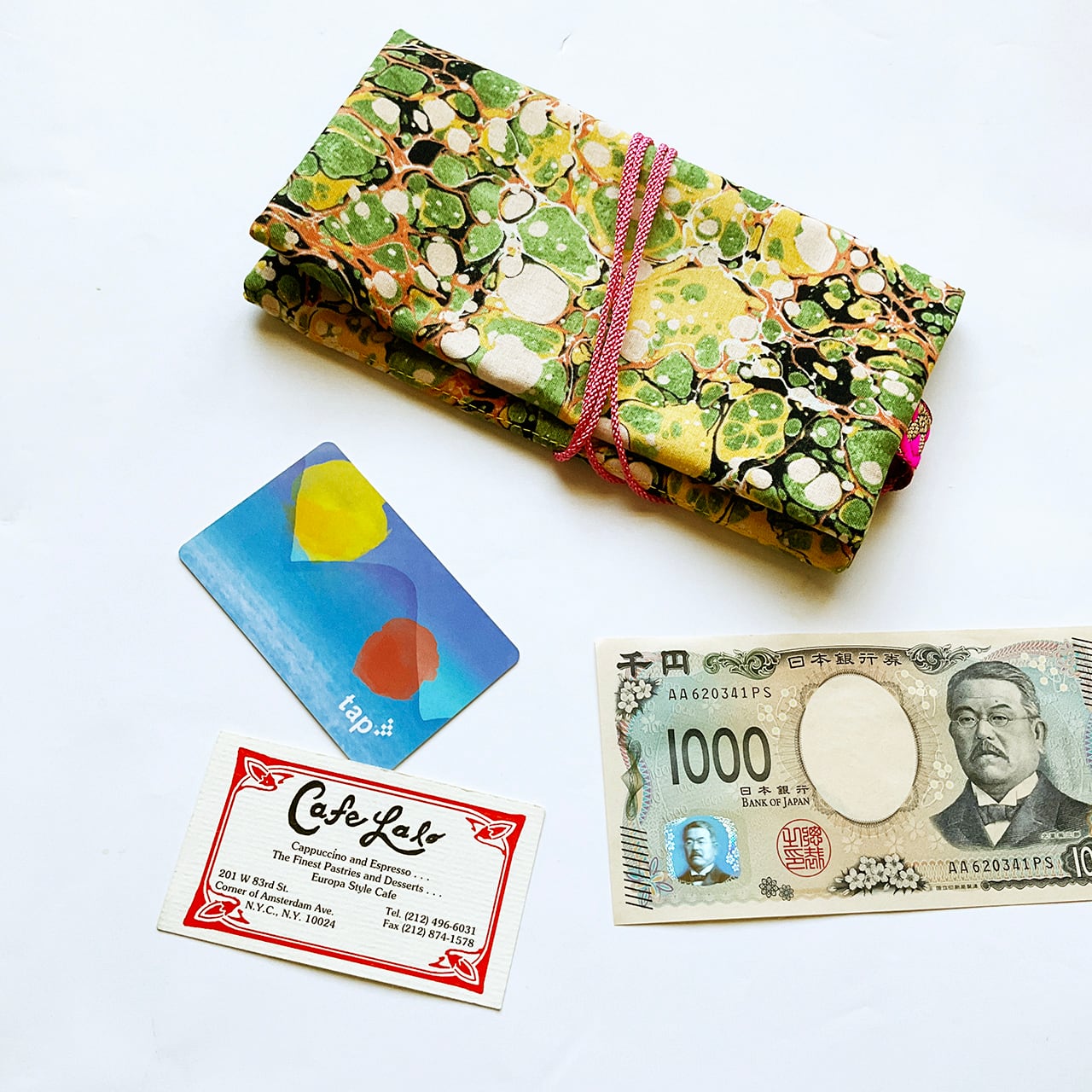 緑の混ざったマーブリング ハンドメイド-ヌノザイフ-1708-97