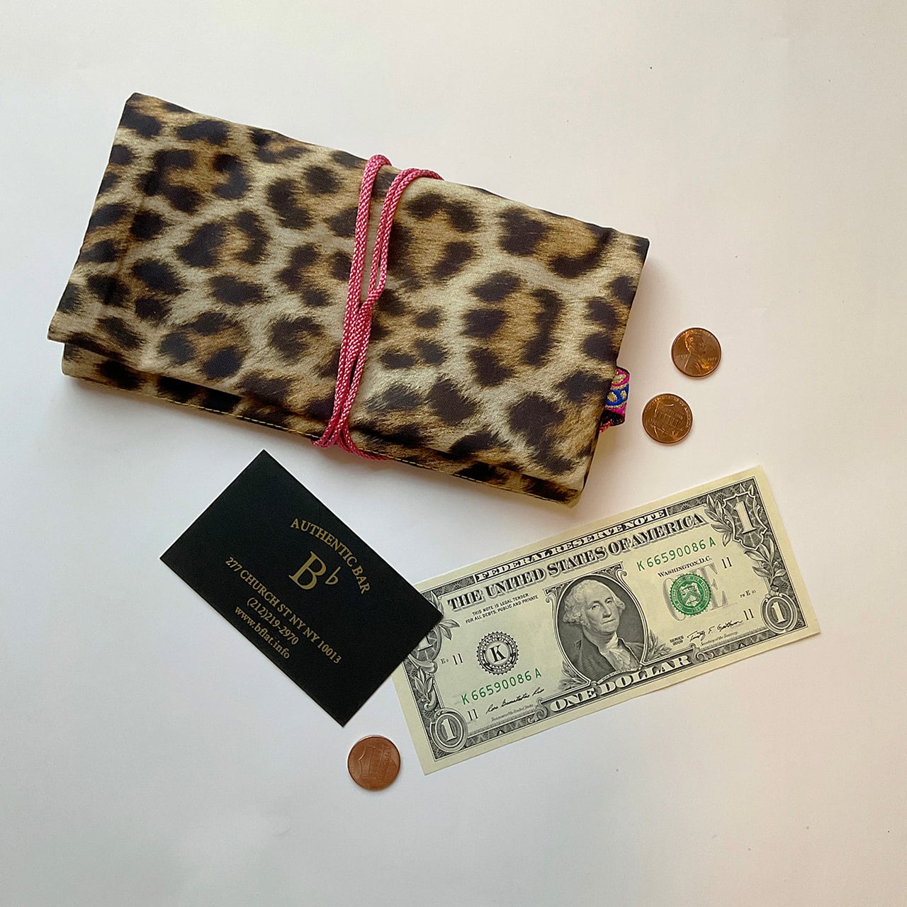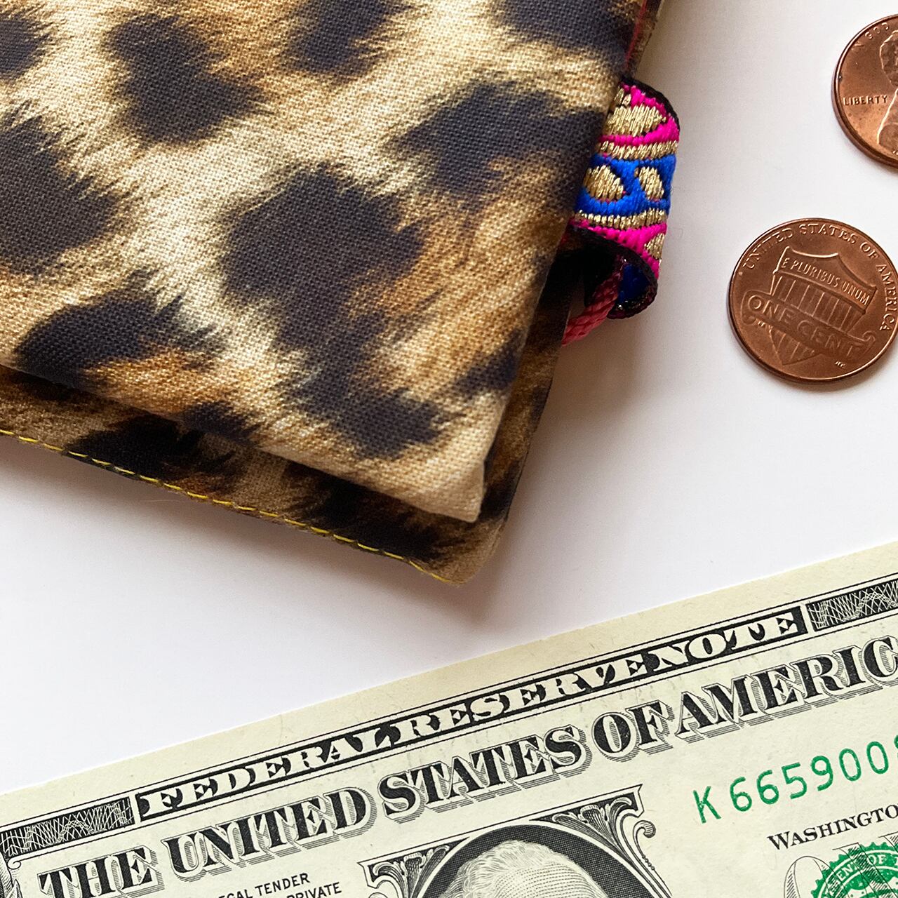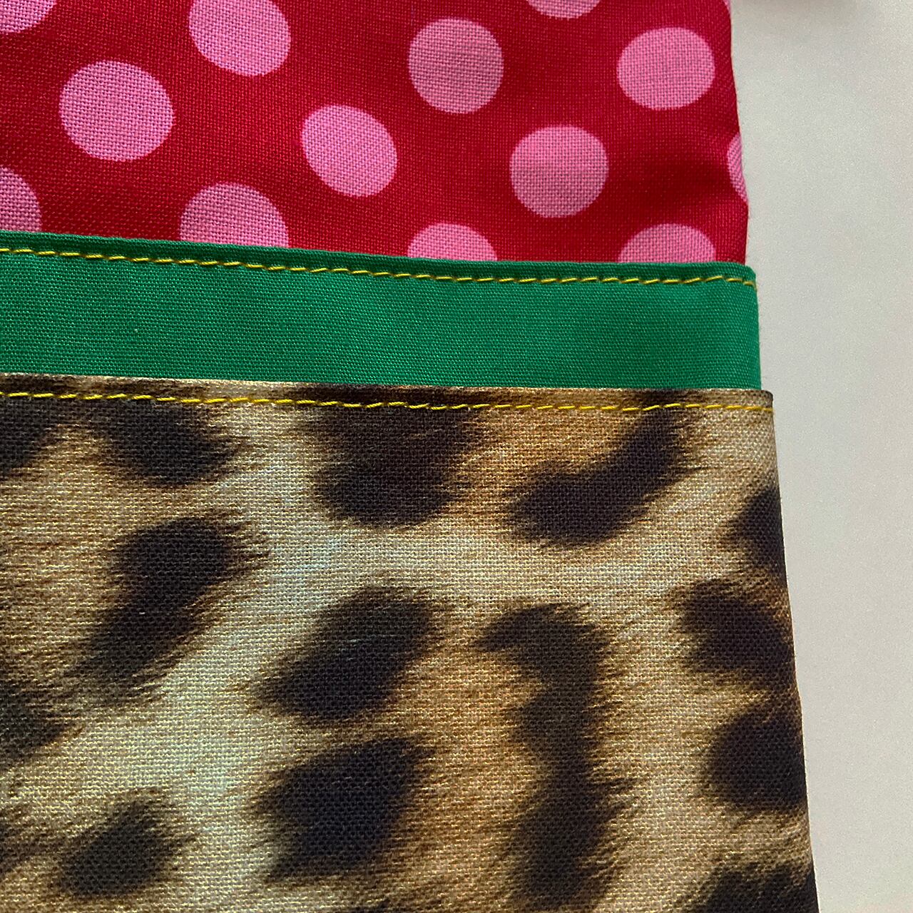 ヒョウ柄のヌノザイフ。はじめての布合わせ。