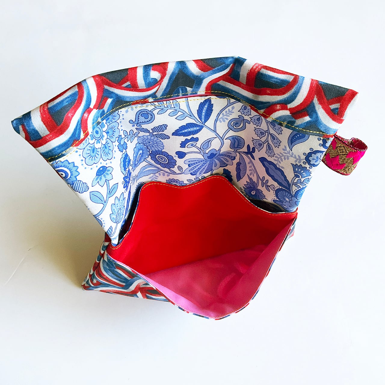 思い立ってデッドストックの布で色とりどりに作って使っていたら、「かわいい!どこで買ったの?私も欲しい!」「こういう軽い財布を探していたよ」とたびたび言われるようになりましたので、sawing club で作ってお裾分けすることにしました。